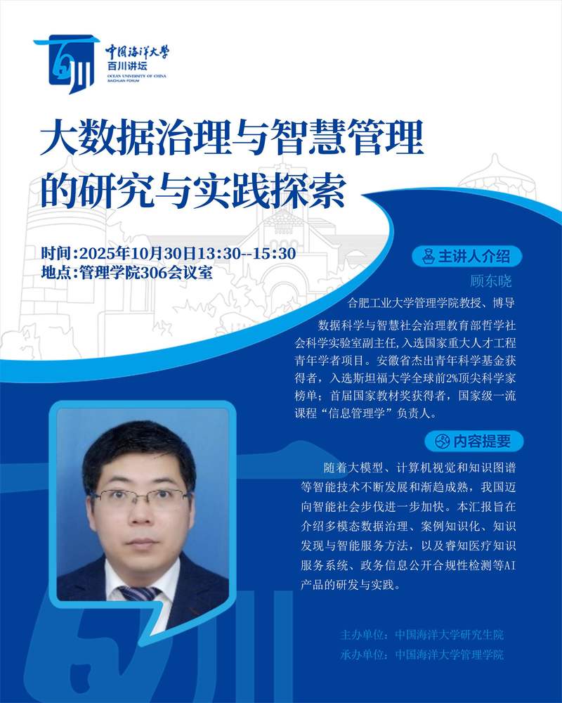研究生百川讲坛第540讲-顾东晓:大数据治理与智慧管理的研究与实践探索