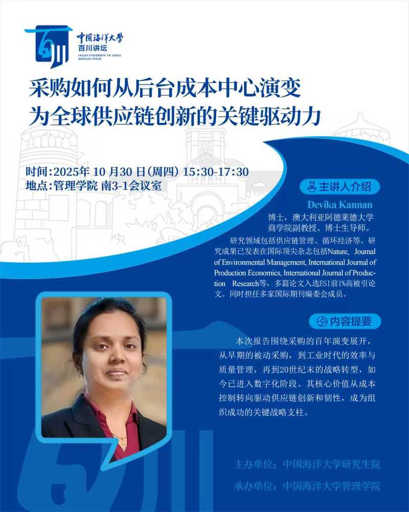 研究生百川讲坛第542讲-Devika Kannan:采购如何从后台成本中心演变为全球供应链创新的关键驱动力