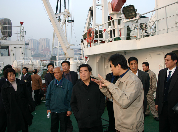 全国政协调研组成员在我校东方红2号海洋综合调查船考察