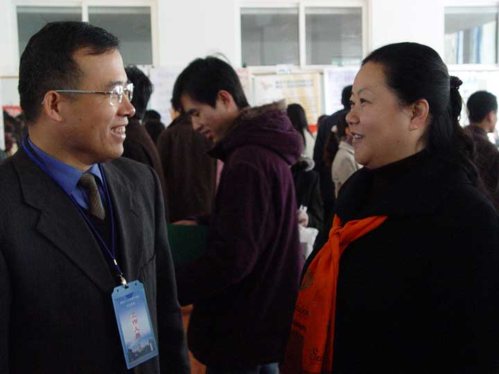 本站讯 2005年3月6日,山东省国际经济贸易联合会与驻青7所大专院校在我校鱼山校区大学生活动中心举办了外经贸人才“双选”会(以下简称“双选”会)。包括海尔、海信等近百家企业参加了“双选”会,提供岗位1000多个。参会的学生汇集了驻青七所高校外经贸类专业的1万余名应届毕业生。党委副书记张静亲临会场,了解了部分就业信息。