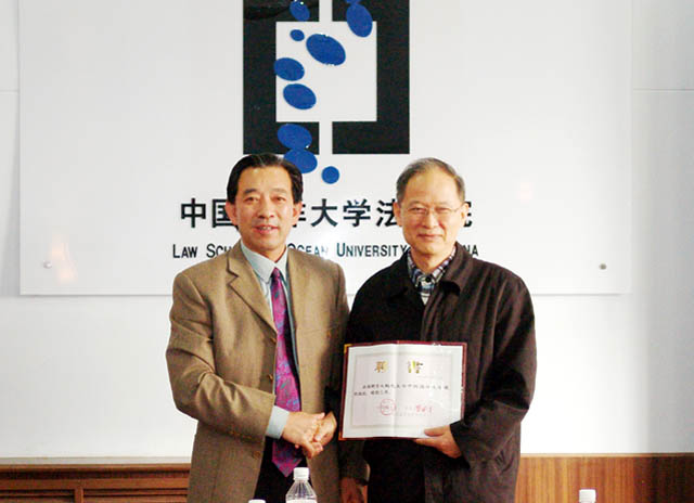 景天魁教授发表讲话,他说,非常荣幸担任中国海洋大学的兼职教授。他表示愿为建设海洋社会学科,发挥学校、学院的优势,为中国海洋大学海洋社会学科的建设和发展尽一份绵薄之力。