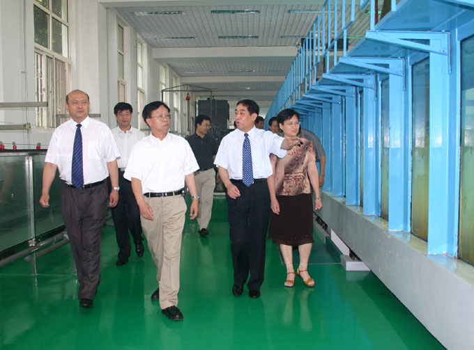 马颂德副部长(前排左二)在冯瑞龙书记(左一)、吴德星副校长(右二)的陪同下视察物理海洋实验室