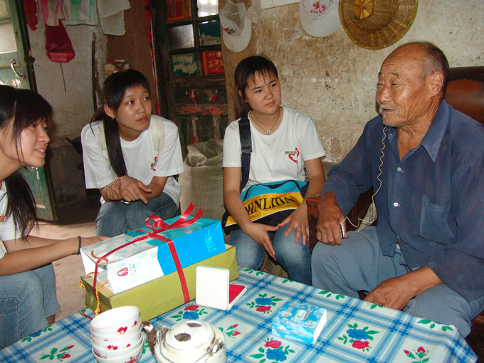 沂蒙山区在抗战期间曾是山东省军政府驻地和山东省抗日根据地。作为抗战的大后方,沂蒙人民发扬艰苦奋斗、不怕牺牲的精神,或英勇抗战,或无私支前,留下了无数可歌可泣的故事。我校的志愿者带着慰问品来到“沂蒙六姐妹” 张玉梅、伊廷珍、伊淑英、冀贞兰和“沂蒙红嫂”张淑贞以及抗战英模苏立胜、殷廷春、苏志伍等家中,了解英模的生活情况,听他们再讲抗战的故事。高等职业技术学院金融专业03级于雪听着“六姐妹”的动人故事,眼里含着泪水,情不自禁地唱起《沂蒙山小调》:“太感人了,对于眼泪我不能吝啬……”“听着‘沂蒙六姐妹’的故事,我好像看到一位满脸慈祥的老大娘正做军鞋,破旧的棉衣很雍肿,但仍透着无限的风度。”金融专业04级何玥衡深情地说,我想起一个人说的一句话:“见到沂蒙山的老大娘,你才知道什么是真正的母亲!”