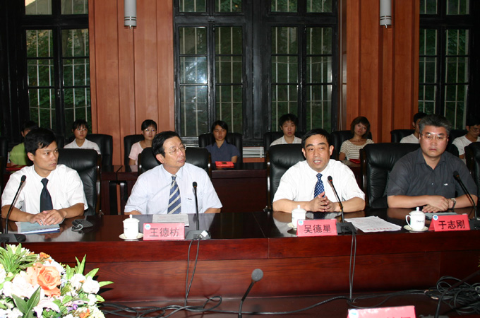 本站讯 9月8日下午,“天泰优秀人才奖”、“天泰奖学金”基金追加签字仪式暨2004年度获奖教师、学生颁奖仪式在胜利楼会议厅举行。校长吴德星,天泰集团党委书记、工会主席王德枋出席签字仪式并为傅刚等18名获奖教师及侯家强等25名获奖学生颁奖。于志刚副校长主持仪式。