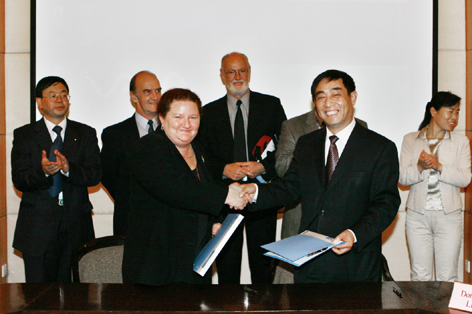 本站讯 10月25日下午,澳大利亚卧龙冈大学(University of Wollongong)一行五人来我校访问。我校校长吴德星在逸夫馆会客厅会见了来宾,并与该校副校长Margaret Sheil共同签署了两校合作谅解备忘录。