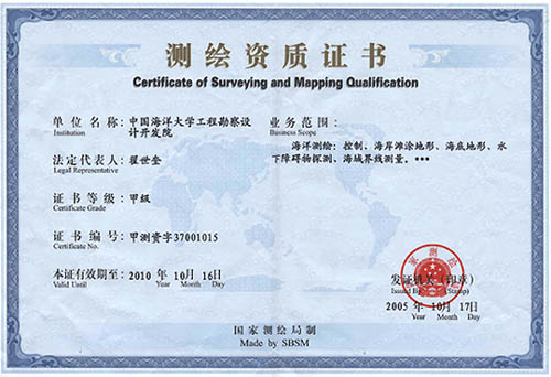 会上,宫志强处长向工程勘察设计开发院颁发了测绘资质”甲级证书。他说,海大一定要严把海洋测绘的质量关,认真负责,在今后的工作中做出更大的业绩。陈培新副局长对我校获得《测绘资质证书》表示祝贺,他希望海大在今后的工作中多培养这方面的优秀人才,并与青岛市相关部门相互配合,使青岛市的海洋测绘等工作真正走在全省前列。