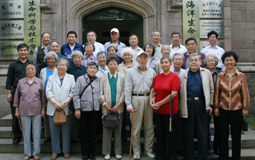 会议由王筱利主持。座谈会结束后,离退休老教师在海洋生命学院科学馆前合影留念。