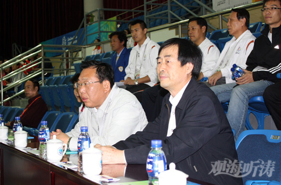 10月18日下午,青岛市副市长王修林来到中国海洋大学综合体育馆,了解赛事各项工作的运行情况,慰问了工作人员,并观看了比赛。中国海洋大学副校长于宜法等陪同王修林副市长视察工作。