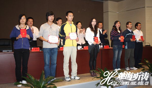 中国海洋大学团委书记初建松主持表彰会,团委副书记林旭升宣读了《关于表彰2009年暑期社会实践活动先进集体先进个人暨第十一届全运会优秀志愿者的决定》。会上,受表彰团队代表做了实践成果汇报。中国海洋大学团委、学生工作处、研究生工作部负责人,全体专职共青团干部,学生代表参加了表彰会。
