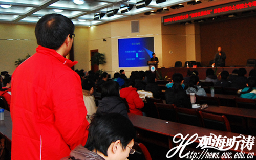 在两个小时报告中,年过七旬的冯院士始终站立讲解,在观众提问环节,刚刚下台休息的老人又再次回到台上为同学耐心解答疑问。他深厚的学术功底,深入浅出的表达方式深深吸引了在场的每一位同学。报告结束时,全体同学起立鼓掌欢送冯士筰院士。至此,2009年中国海洋大学“海洋发展论坛”圆满落幕。
