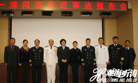 本站讯 2009年12月23日,由中宣部、解放军总政治部、共青团中央联合组织的“模范践行当代革命军人核心价值观的优秀指挥员蔡一清同志先进事迹报告会”在中国海洋大学举行。海大党委副书记张静,部队领导,以及海军驻海大选培办、武装部相关负责人出席报告会。