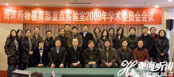 本站讯 2009年12月27日上午,海洋药物教育部重点实验室学术委员会会议在中国海洋大学鱼山校区召开。学术委员会副主任委员、重点实验室主任管华诗院士出席会议,海大副校长闫菊到会致辞,来自中国科学院昆明植物研究所、军事医学科学院毒物药物研究所、中国科学院上海药物研究所、中国科学院上海有机化学研究所,以及海大学术委员会委员出席了会议。