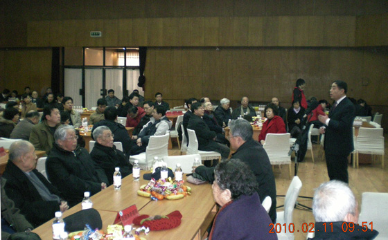 本站讯 2010年2月11日,农历腊月二十八,岛城寒风凛冽,雪花飞舞。中国海洋大学春节团拜会在鱼山校区逸夫馆多功能厅召开。于志刚、吴德星、管华诗、冯瑞龙、文圣常、冯士筰、于宜法、董双林、张静、闫菊等学校党政领导及两院院士,部分学校老领导等离退休人员代表,各职能部处、院(系)、海大附中负责人及教职工代表互致新春的祝福,会场里暖流涌动,气氛热烈。