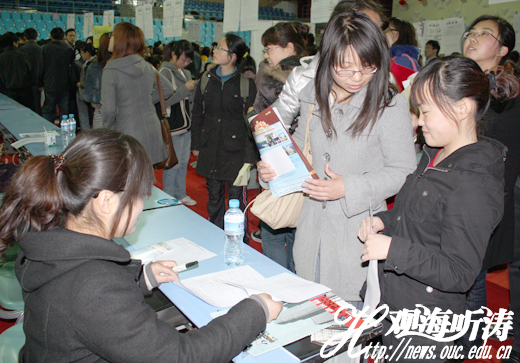 本站讯 2010年4月13日,为促进大学生创业就业,给大学生创业就业提供服务、搭建平台,由中国海洋大学毕业生就业指导中心、团委联合举办的2010年“百家企业进校园”招聘会暨青年就业创业见习基地岗位对接会在海大崂山校区体育馆举行。