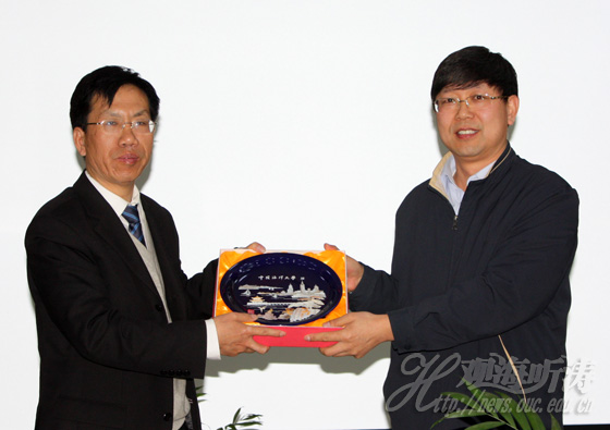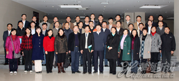 本站讯 2010年4月21日上午,国家教育行政学院第33期高校中青年干部培训班赴山东考察团来到中国海洋大学,就学校的办学特色和经验、学科建设、教学科研工作,以及校区管理等方面进行考察调研。海大副校长李巍然在崂山校区图书馆第一会议室会见了考察团一行。