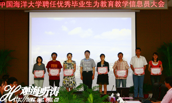 本站讯 中国海洋大学聘任优秀毕业生为教育教学信息员大会于2010年6月23日上午在崂山校区图书馆第一会议室举行。教育教学信息员是经个人自愿报名,院(系)推荐,学校遴选,从省优秀毕业生中选出聘任人选25名,受聘教育教学信息员将在新的工作和学习岗位上帮助做好学校教育教学及毕业生需求等信息的反馈工作。