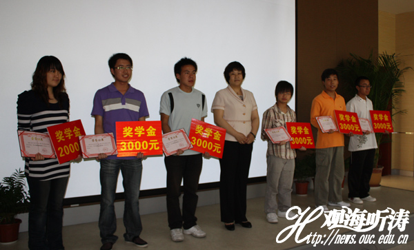 本站讯 “选择了西部我们就会坚定不移地走下去,我们会谨记学校给予的厚望,为西部做贡献,为海大争光彩,希望西部地区在有志青年的无私奉献下,早日繁荣起来……”即将赴西部艰苦基层就业的2010届毕业生代表李帅在2010年6月23日上午于中国海洋大学崂山校区图书馆第一会议室举行的赴西部艰苦基层就业毕业生表彰会上如是说。中国海洋大学党委副书记张静出席表彰会,并为受表彰毕业生颁发证书和奖金。