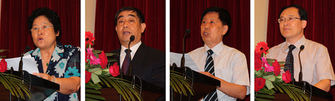 由左向右依次为金莲淑、吴德星、李振声、周安在年会开幕式上致辞