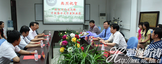 本站讯 2010年7月7日下午,聘任海信集团王志浩副总裁为中国海洋大学兼职教授的仪式在信息科学与工程学院学术厅举行。海大副校长于宜法出席聘任仪式,并为王志浩副总裁颁发聘书。