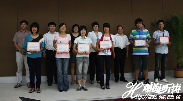 中国海洋大学组织部、学生工作处、毕业生就业指导中心、团委、人事处、研究生工作部相关负责人,第五届兼职辅导员参加仪式。