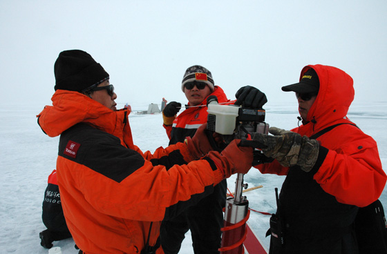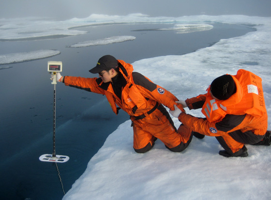 作为中国第一个南北两极都登上的科学家,赵进平教授已经是第十次参加北极科考工作了,他向记者介绍了本次北极科考的有关情况。他说,本次科学考察的目标是“北极海冰的快速变化及其物理机理”。6名海大科考队的成员克服艰险、团结协作,以破釜沉舟的气慨圆满完成了考察任务。赵进平教授表示,学校一直高度重视极地研究工作,为科研课题提供启动资金,并购买先进仪器设备,使极地研究工作得以顺利开展,并取得相应的科研成果。他表示,今后要努力争取更多的实践考察机会,进一步锻炼科研队伍,使得年轻一代的科研工作者能够尽快成长起来,成为极地研究工作的生力军、主力军。