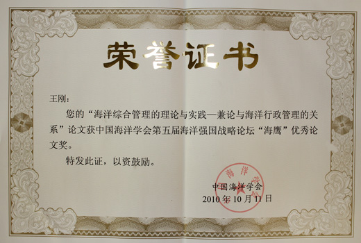 本届论坛主题为“加速海洋科技创新,促进沿海区域经济发展”。会上,中国海洋大学麦康森院士作了《中国水产养殖与水产饲料工业的成就与展望》大会主题报告。论坛共收到由中国海洋大学完成的论文6篇,其中法政学院王刚完成的《海洋综合管理的理论与实践—兼论与海洋行政管理的关系》论文被评为中国海洋学会第五届海洋强国战略论坛“海鹰”优秀论文。