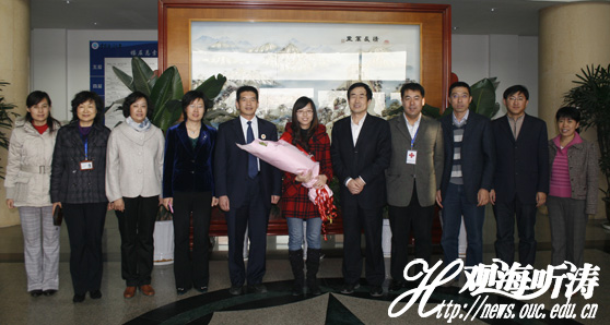 本站讯 12月22日,中国海洋大学经济学院2010级国际贸易系硕士研究生张国庆将赴济南捐献造血干细胞。青岛市红十字会副会长苏海音,崂山区政府副区长、区红十字会会长于鹏,海大副校长于宜法为张国庆送行。