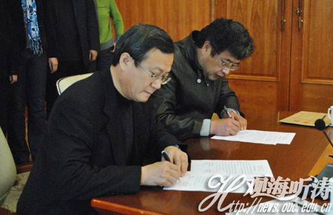 董双林副校长、韩军副市长先后致辞。会谈中,双方就中国海洋大学水产学院与济宁市渔业局共建教学科研基地事宜进行商谈,并达成共识。根据协议,中国海洋大学水产学院在基地实施教学实习及科研项目的同时,为生产单位解决实际问题,并进行科研项目合作研究;济宁市渔业局作为中国海洋大学水产学院本科生和研究生教学科研试验场地,为中国海洋大学水产学院提供有关教学实习、科研项目研究的基础设施、水电供应、劳力及生活保障。