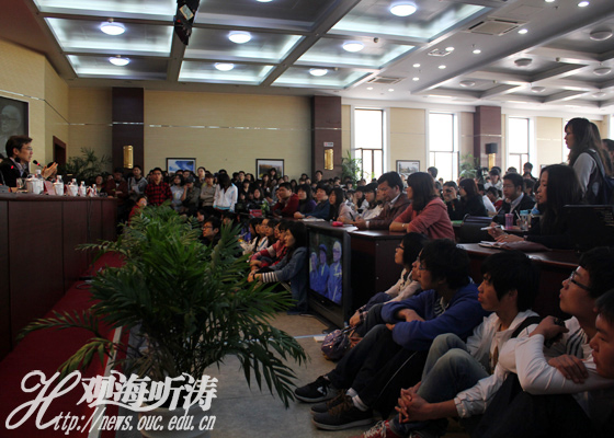 报告会后,吉冈、毕淑敏同海大师生就大家共同关心的话题进行了交流。