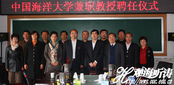 本站讯 4月21日上午,中国海洋大学在鱼山校区举行仪式,聘任青岛市气象局局长赵广忠为学校兼职教授,副校长于宜法出席聘任仪式,并为赵广忠颁发聘书。