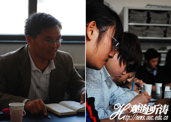 教师代表认真发言 海大学生仔细记录