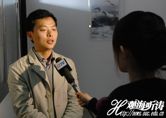 青岛电视台记者现场采访海大师生