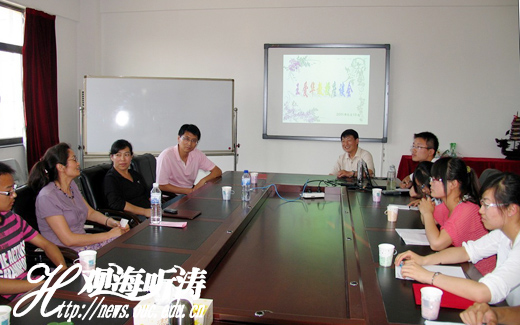本站讯 6月15日下午,中国海洋大学第六届爱华奖学(教)金颁奖仪式在数学科学学院会议室举行。爱华奖学(教)金的出资设立者、美国空军技术学院王爱华教授,海大党委副书记张静、学生工作处副处长鞠红梅,数学科学学院党委书记武心尧、院长方奇志、副院长李长军和曹圣山出席仪式,并为获奖师生颁奖。