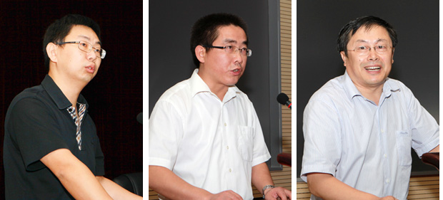 科技处、化学化工学院、海洋生命学院有关负责人(从左至右)作典型发言