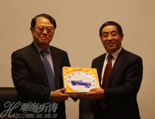 本站讯 11月11日下午,中国海洋大学校长吴德星在崂山校区会见了来校访问的韩国学中央研究院院长郑正佶一行。双方就增进两校合作关系,深化学术交流等事宜交换了意见,并签署学术交流协议书。