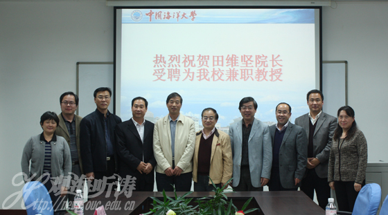 本站讯 2011年11月17日下午,中国海洋大学在信息科学与工程学院举行仪式,聘任青岛光电工程技术研究院院长田维坚为兼职教授。海大党委副书记、纪委书记刘贵聚为田维坚颁发聘书并致辞。
