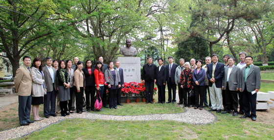 本站讯 5月11日,我国著名生物学家、遗传学家,我国海洋生物遗传与育种研究奠基人方宗熙先生的塑像在鱼山校区揭幕。中国海洋大学副校长李巍然,方宗熙教授家属代表方菁,海洋生命学院院长包振民,方宗熙教授弟子代表、黄海水产研究所所长王清印共同为塑像揭幕。