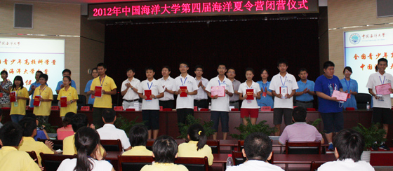 中国海洋大学招生办公室主任范其伟对本届夏令营优秀营员的评选办法进行了说明,他说,按照全国青少年高校科学营中国海洋大学分营暨海大第四届海洋夏令营优秀营员评选办法,经过各班民主投票,最终评选出95位优秀营员,希望营员们再接再厉,努力学习,考上理想的大学。闭营仪式上,与会领导及老师为优秀营员们颁奖。