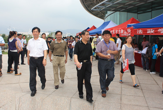吴德星校长(前排右二)、于宜法副校长(左一)检查迎新工作