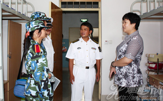 军训工作检查结束后,党委副书记张静与学校有关部门负责人及相关学院党委副书记一起,前往新生宿舍进行检查,并对新生的宿舍内务水平给予了高度评价。