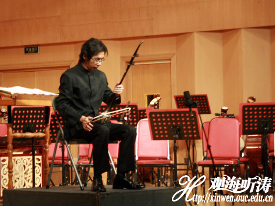 本站讯 10月12日晚,由中国海洋大学主办,台湾桃园乐友丝竹室内乐团、中国海洋大学艺术系联合承办的中国海洋大学民族管弦乐团台湾作品专场音乐会在青岛音乐厅精彩上演。桃园乐友丝竹室内乐团指挥毛佩蓉担任指挥,携手中国海洋大学民族管弦乐团共同展现台湾民乐风情。