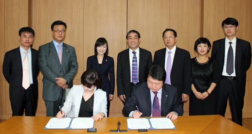 陈锐校长助理(右)与诚信女子大学国际交流处车景旭处长签订本科生交换协议