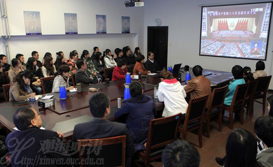 中国海洋大学师生认真收看党的十八大开幕式实况【图四】