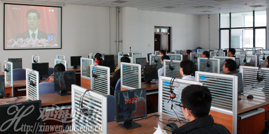 中国海洋大学师生认真收看党的十八大开幕式实况【图三】