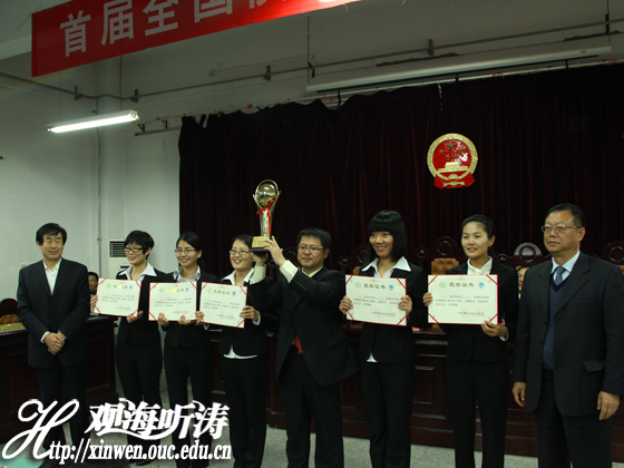 接下来,海大法政学院党委书记崔凤宣布大赛获奖名单即优秀指导教师奖,南开大学等十二支代表队在喜庆的音乐声中上台领奖。海大法政学院院长徐祥民精辟地总结道,“此次大赛代表着环保事业、法制建设、教育事业、文明法制的光辉未来!”