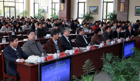 两个多小时的报告会,张荣臣教授用生动的历史事例和社会现状向与会人员深刻解析了党的十八大精神。全校党政管理干部,社科部全体教师,学生会、研究生会代表参加会议。