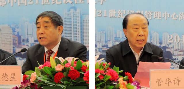 吴德星校长(左)、管华诗院士(右)在大会上致词