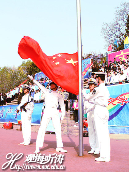 | 本站讯 2013年4月27日,中国海洋大学第67届体育运动会在鱼山校区体育场隆重举行。海大老领导、原青岛海洋大学校长施正铿,党委副书记李耀臻,副校长于宜法,总会计师王剑敏,校长助理、党委办公室主任、校长办公室主任陈锐,党委常委、组织部部长卢光志出席开幕式,开幕式由党委副书记张静主持。 开幕式伊始,全体人员为雅安遇难同胞默哀一分钟,沉痛悼念四川雅安地震遇难者。 8时30分,运动会正式开始。伴着运动员进行曲,18个院系方阵悉数登场。同学们英姿飒爽,步伐矫健,昂首阔步地走过主席台。各方队或伴随着合唱演奏、或由各种卡通吉祥物带领,嘹亮的口号表现出他们必胜的决心。 运动员入场后举行了庄严的升国旗仪式。在全校师生的集体注目下,五星红旗在国歌声中徐徐上升。 李耀臻副书记致开幕词。他首先代表大会组委会向筹备本届运动会的全体工作人员表示感谢。他表示,一年一度的运动会充分体现了海大人热情、饱满的精神风貌。李耀臻指出,中国海洋大学的体育事业不断发展,女子射箭、女子拳击、沙滩排球等项目在国际和国内重大赛事中都获得令人欣喜的成绩,为学校赢得了荣誉。他希望运动员能赛出水平,赛出风格,再创佳绩。开幕式上,运动员代表吴凯歌、裁判员代表谭嘉辉相继宣誓。 随后进行的教工广播体操比赛中,教工们身着各色运动服随着音乐的律动舒展身体。平日里站在讲台上的教师此时此刻变得极具运动范儿,伸展运动、踢腿运动等环节充分展现出青春与活力。水产学院、管理学院、化学化工学院等学院的健美操、啦啦操同样吸引众多观众的眼球,其中管理学院的啦啦操队员们化身海军,拉开“强国之梦”的横幅,向观众传播正能量。 张静副书记在接受记者采访时表示,举办一届成功的运动会不仅要展示运动员的运动水平,体现良好的精神风貌,更需要带动大家平时参与身体锻炼。她希望,运动员能以拼搏、向上的精神取得佳绩。 文:马崇道 王来 图:观海听涛  五星红旗 肃然升起  院(系)方队昂首阔步入场  “战斗”的号角已经吹响  【回澜阁】第四期 体质不强,何谈栋梁:探访海大体育运动之路 |