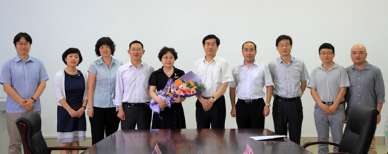 本站讯 6月20日下午,中国海洋大学在外国语学院会议室举行仪式,聘任延边大学“2011协同创新中心”主任、师范学院朝文系教授蔡美花女士为学校兼职教授。副校长于宜法为蔡美花教授颁发聘书。