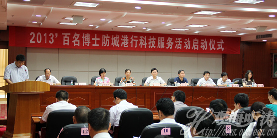 2013“百名博士防城港行”科技服务活动汇聚了来自清华大学、北京大学、中国农业大学、中国海洋大学等25所高校、科研院所的118名硕士(博士)研究生以及专家教授,他们将根据当地经济发展的特点与人才科研服务的需求,深入防城港市各区县、政府单位、企业进行科技服务以及挂职锻炼等。